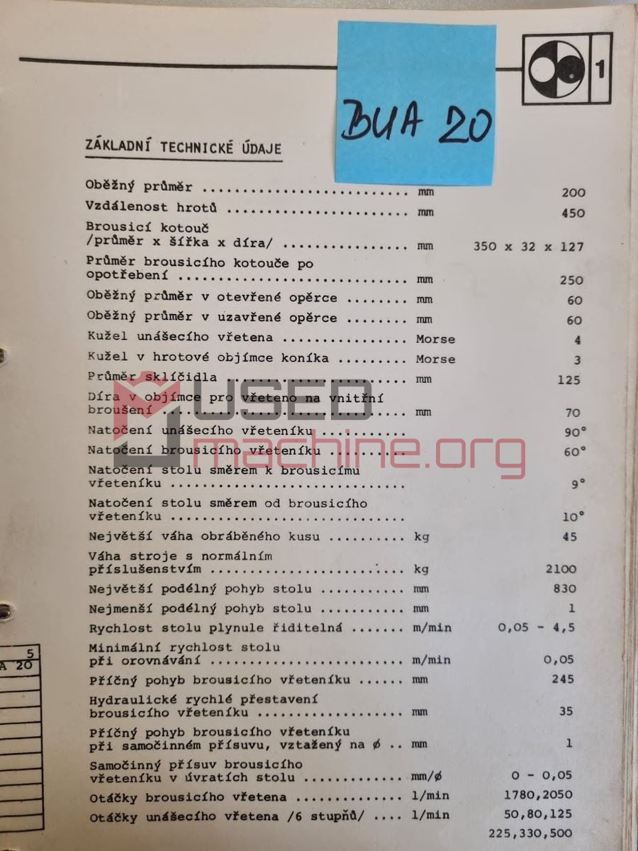 Grinding length: 700 mmGrinding width: 350 mmTable clamping surface: 1.100 x 300 mmTable height above ground: 1.000 mmMax. distance between table and center of spindle: 575 mmTable movement (longitudinal)Hydraulic, infinitely adjustable: 2 – 30 m / min.Hand wheel, 1 revolution moves table by: 100 mmTable movement (traverse)Automatic, infinitely adjustable: 2 – 65 mmHand wheel, with adjustable scaling ring and nonius, division: 0,02 mmWith fine adjustment: 0,01 mmGrinding wheel height adjustmentHand wheel, division: 0,002 mmAdjustable from: 0,001 – 0,01 mmTap-adjustment from: 0,001 – 0,01 mmQuick adjustments with electric motor: rapid traverseGrinding wheelRevolutions: 1.400 / 2.800 U / min.Max. grinding wheel – Ø: normal: 300 mm / smallest: 165 mmMax. grinding wheel width: normal: 50 mm / maximum: 80 mmGrinding wheel bore: normal: 76 mmDrive power: 8,0 kWWeight: approx. 3.000 kgStanding area: W 2,10 x H 1,60 x D 1,95 m